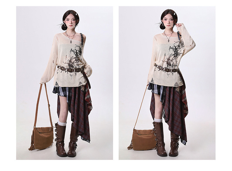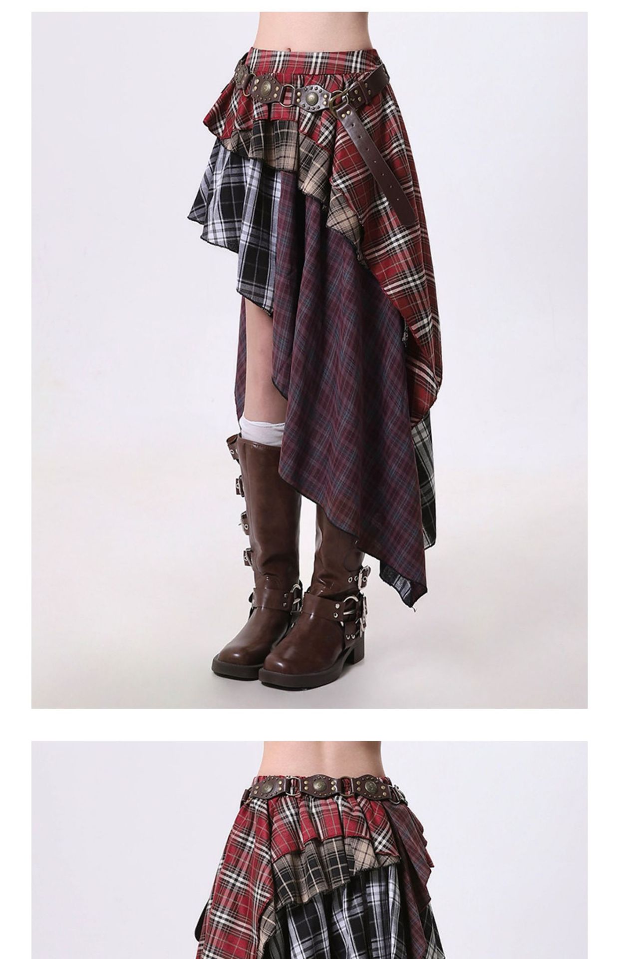 レトロ不規則チェック柄スカート女性のための春と夏 Yabi 甘くてクールなホットガールハイウエストスリムスポーツスタイルプリーツスカート
