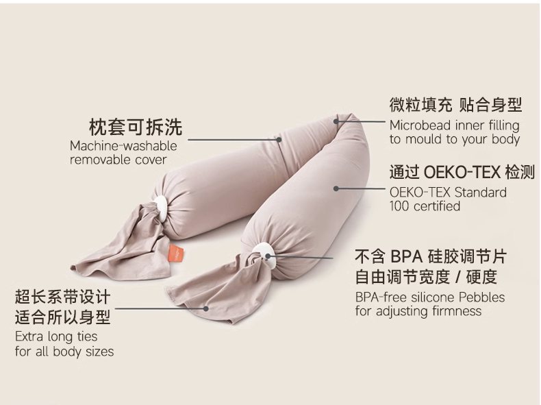 マタニティ枕、腰を保護する横向き寝枕、腹部サポートU字型枕、横向き寝枕、粒状ロングキャンディ枕