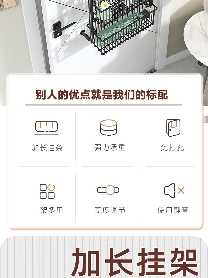 ドアの後ろに穴を開けずに吊り下げバスケット収納ラック多層収納ラックバスルームドアの後ろの吊り下げラック多機能整理ラック