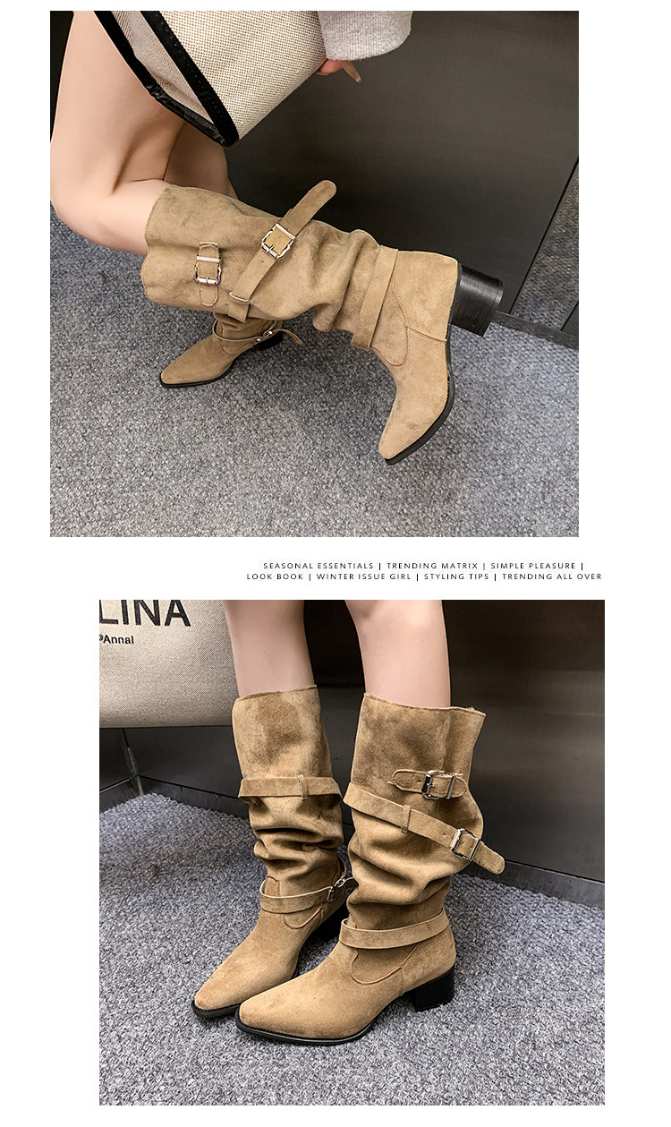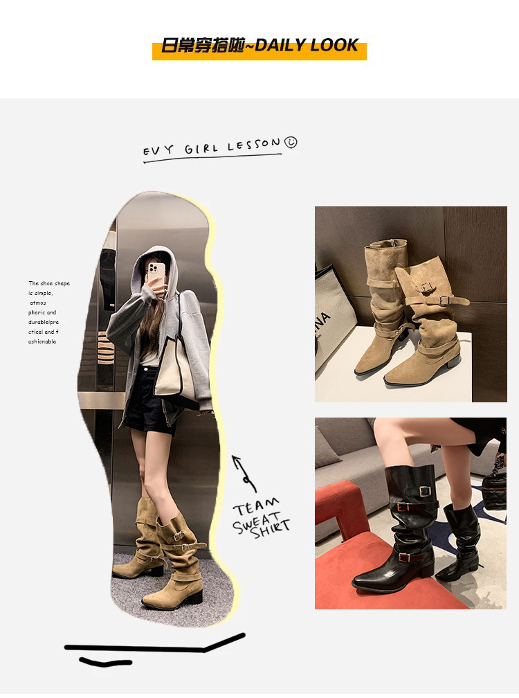 ウエスタンカウボーイ厚底ブーツレディース2025年秋新作レディースニーハイブーツレディースラージチューブウエストブーツ
