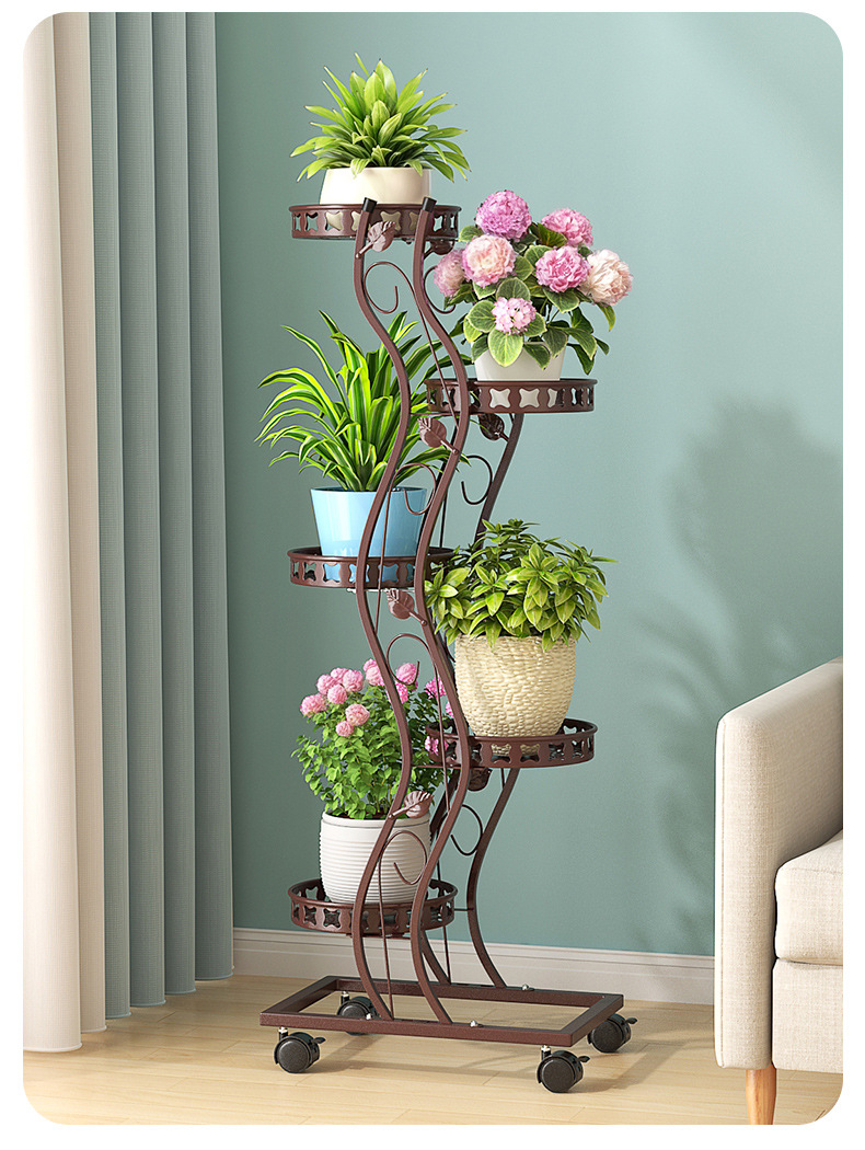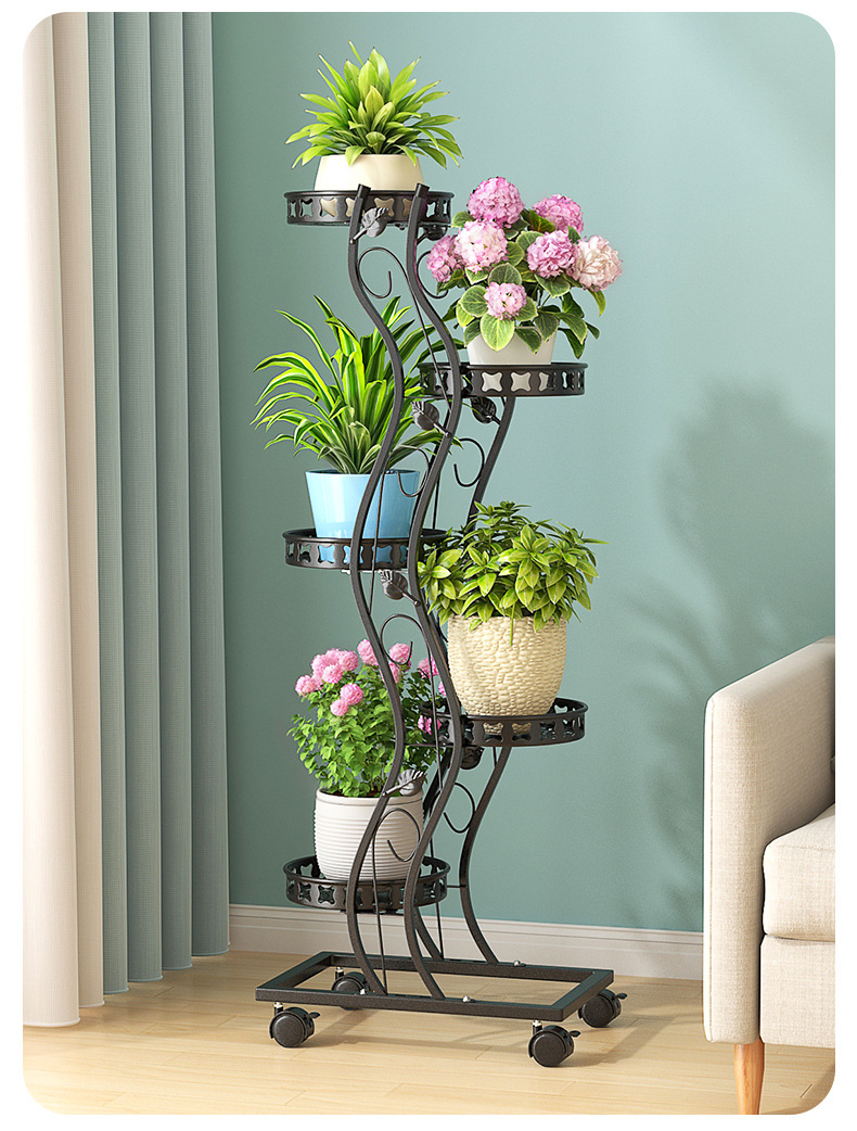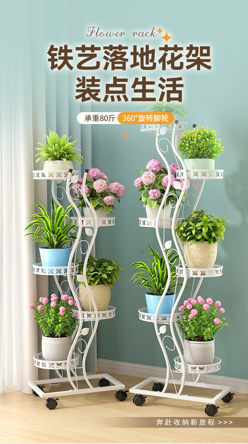 多層可動省スペースフラワースタンドバルコニーリビングルームテレビキャビネットの横に鉢植え収納ラックバルコニー床置きフラワースタンド