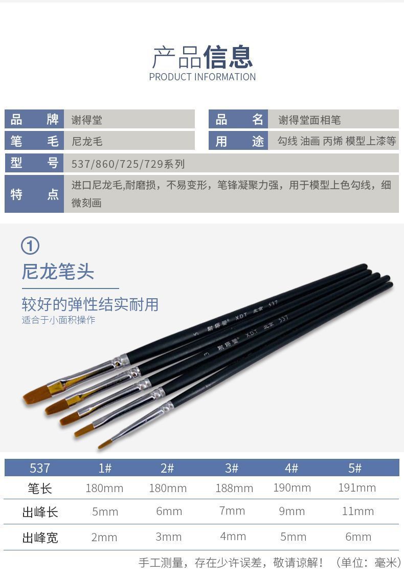 謝徳堂筆面相筆平筆筆刷画筆カラー油絵具模型手描き塗料ツール模型着色