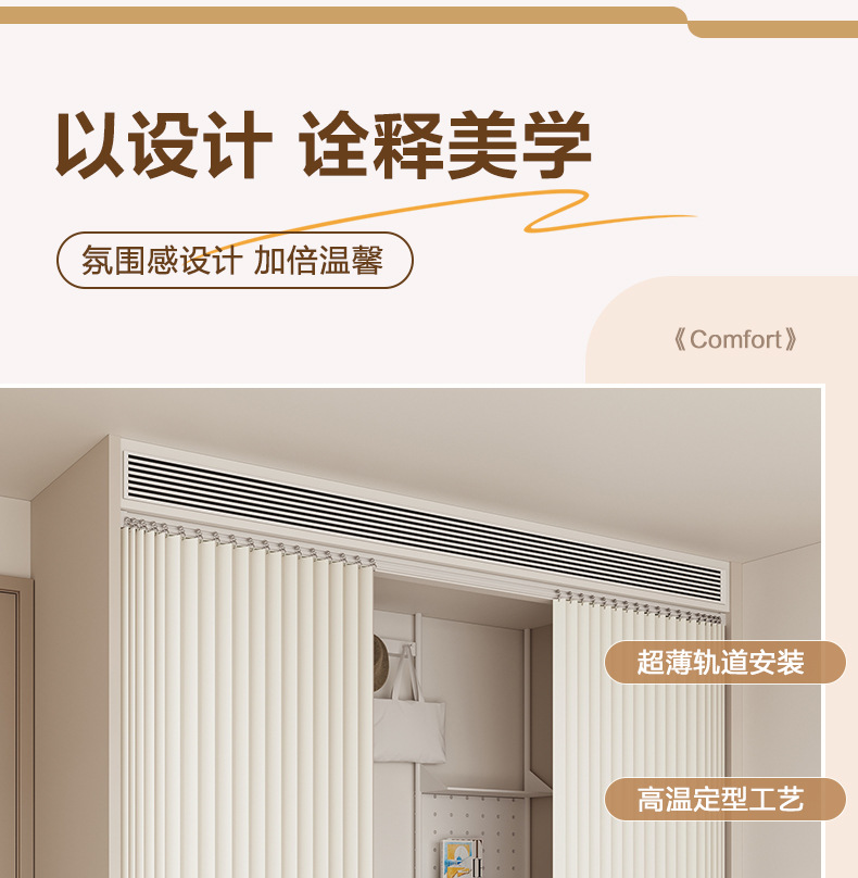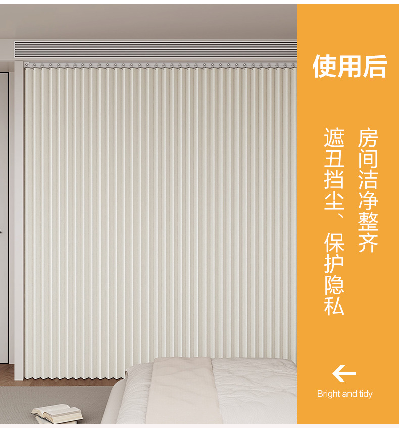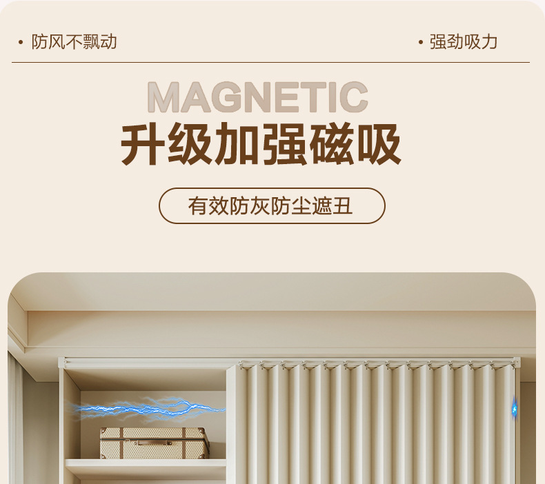 オープンワードローブカーテン、ドアなしキャビネット、防塵ドアカーテン、パンチングなしクローク折りたたみカーテン、スライドレールカーテン