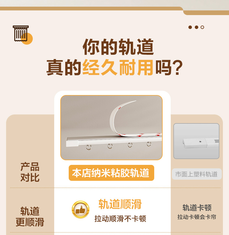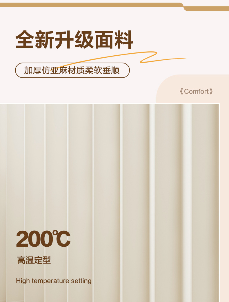 【双侧磁吸】奶油亚麻帘+轨道+金属圆环+绑带