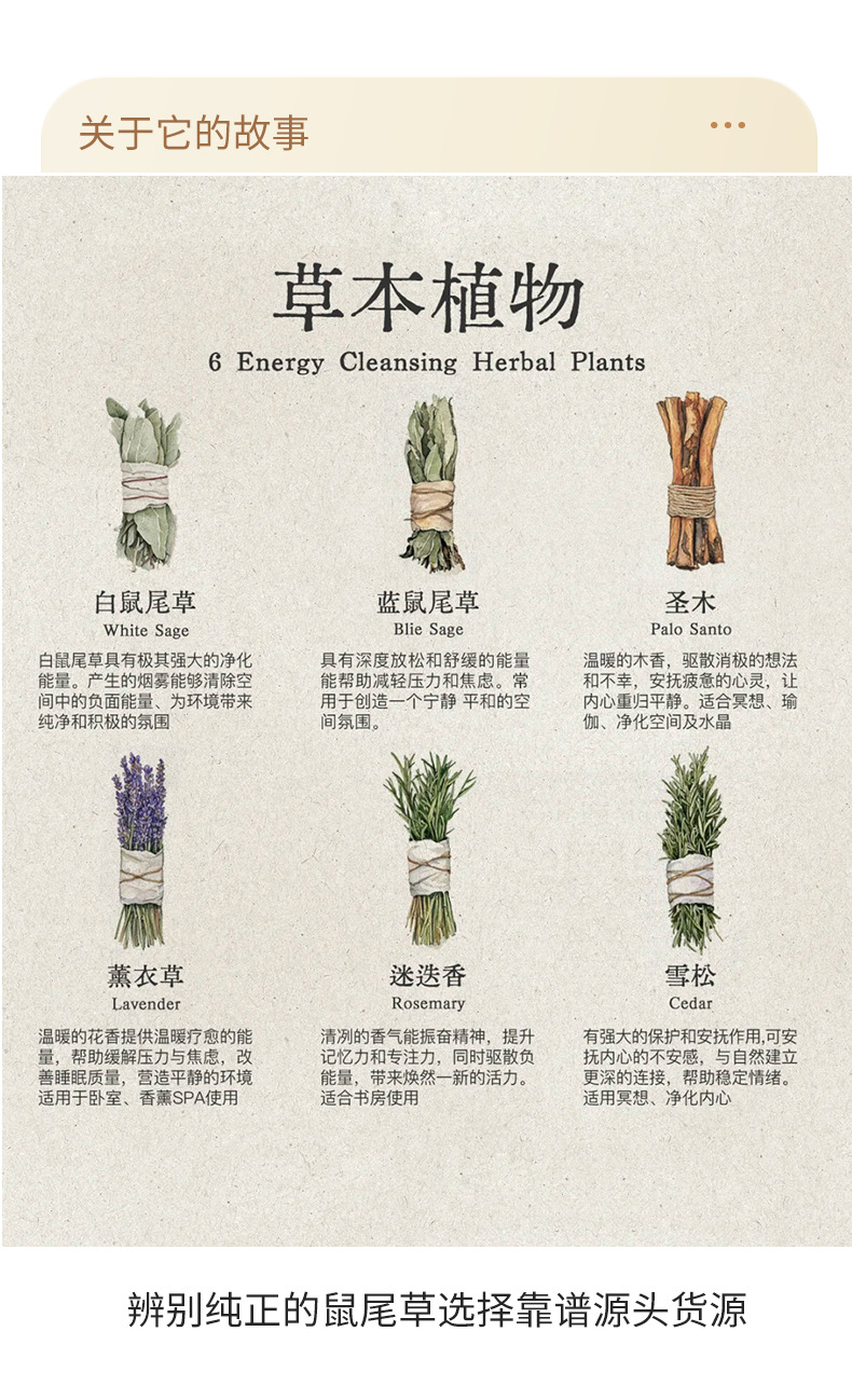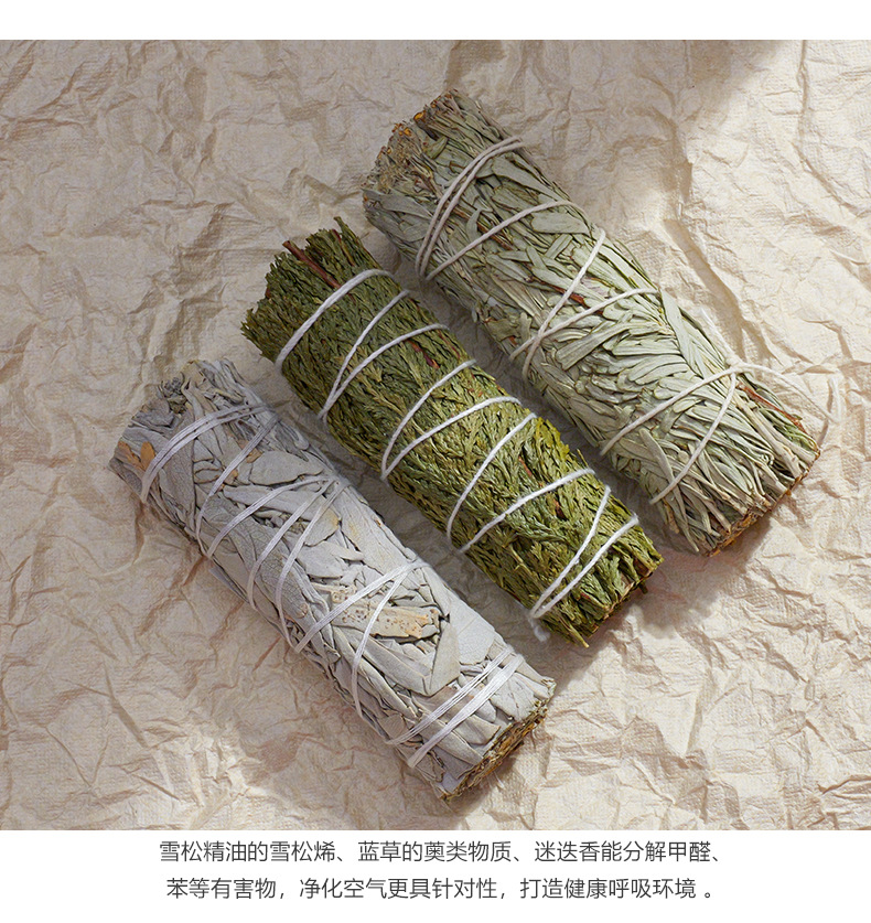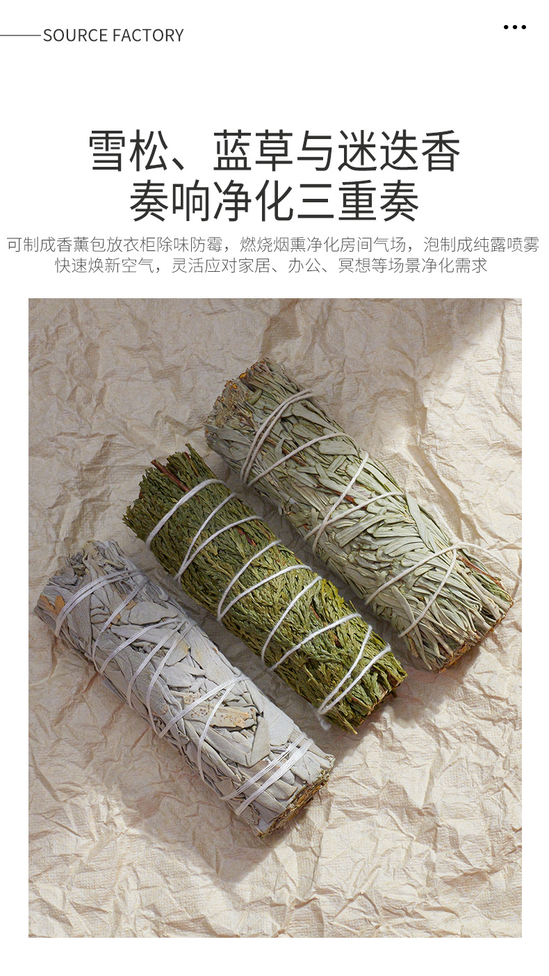 アメリカのカリフォルニア産ホワイトセージ、シダー、ラベンダー、ブルーグラスのアロマセット、空間浄化用聖なる木ホワイトセージ