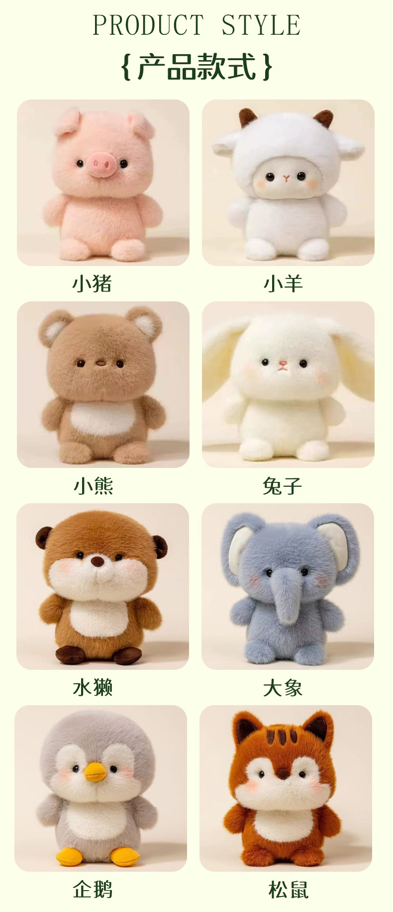ヒグマ風(高級綿中綿),ペンギンスタイル(高品質綿詰め),小さな象のモデル(高品質綿詰め物),ウォーターライフスタイル(高品質綿中綿),リス風(高級綿中綿),ピギースタイル(高品質綿中綿),ラムスタイル(高品質綿中綿),ウサギスタイル(高品質綿詰め)